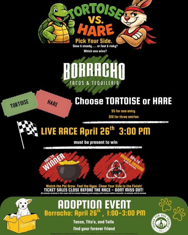 Join us in community service at the Higher Grounds Animal Sanctuary. The event will involve walking adoptable dogs and selling raffle tickets for the tortoise and hare race. Lunch will be provided, and you will get the chance to pet some cute animals! Transportation is also provided.